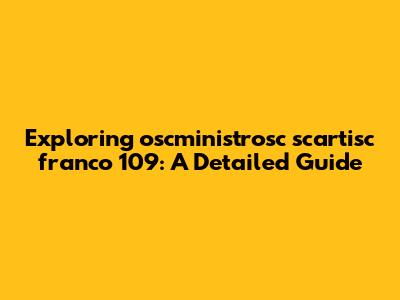 Now, let's try to synthesize our understanding of "oscministrosc scartisc franco 109." Given our previous analysis, we can hypothesize that this term refers to a French standard (or something related to France) concerning optical systems (or something oscillating) that is governed or overseen by some ministerial body. Specifically, it is the 109th iteration of the standard or related to the number 109 in some way. To validate this hypothesis, we would need to conduct further research and gather additional context. This might involve consulting with experts in the relevant fields, exploring technical documentation, or searching for online discussions that mention this term. Consider the possibility that "oscministrosc scartisc franco 109" is a highly specialized term used within a specific industry or community. In this case, it might be necessary to narrow your focus and target your research to the relevant domain. Don't be afraid to reach out to experts or online communities for assistance. Collaboration and knowledge-sharing can be invaluable in deciphering complex terms. Remember, the goal is to build a comprehensive understanding of the term and its meaning. By combining your research skills with a bit of collaboration, you can unlock the secrets hidden within "oscministrosc scartisc franco 109." So, keep exploring, keep questioning, and keep pushing the boundaries of your knowledge – the answer is within reach. If "oscministrosc" relates to governmental oversight, "scartisc" ties to the SCART standard, and "franco 109" denotes French origin with a specific identifier, the phrase could describe a regulatory compliance standard for SCART-related technologies in France.